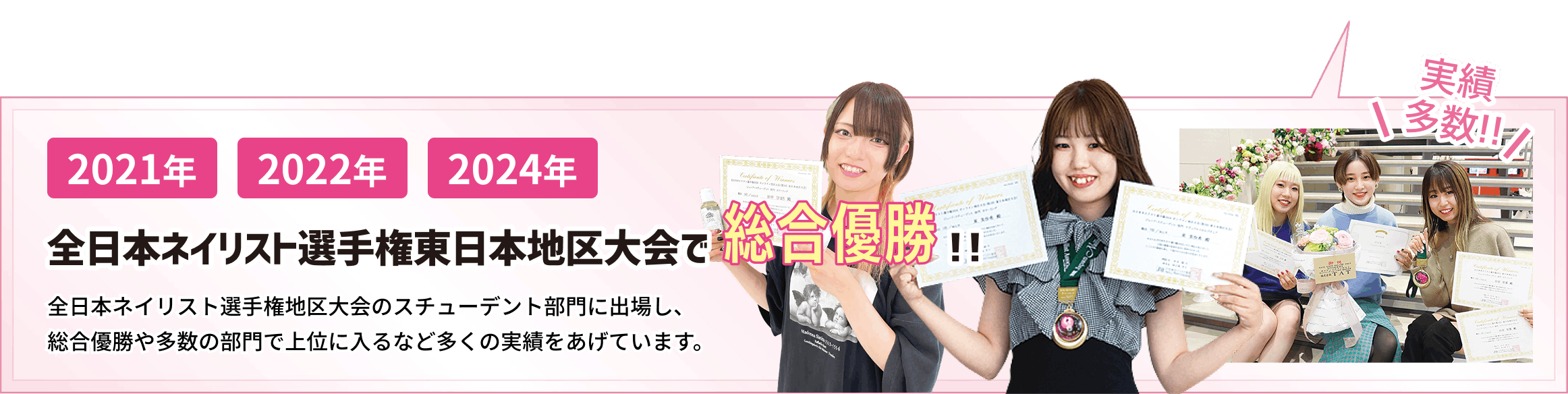 ネイルケアとスカルプチュアの技術力を磨き、コンテスト上位を目指します。