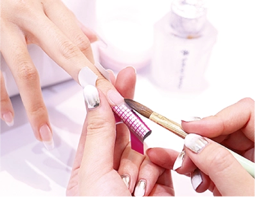 自爪の上にアクリル樹脂を塗布し、希望の形に整えたり、長さ出しをする技術を学びます。