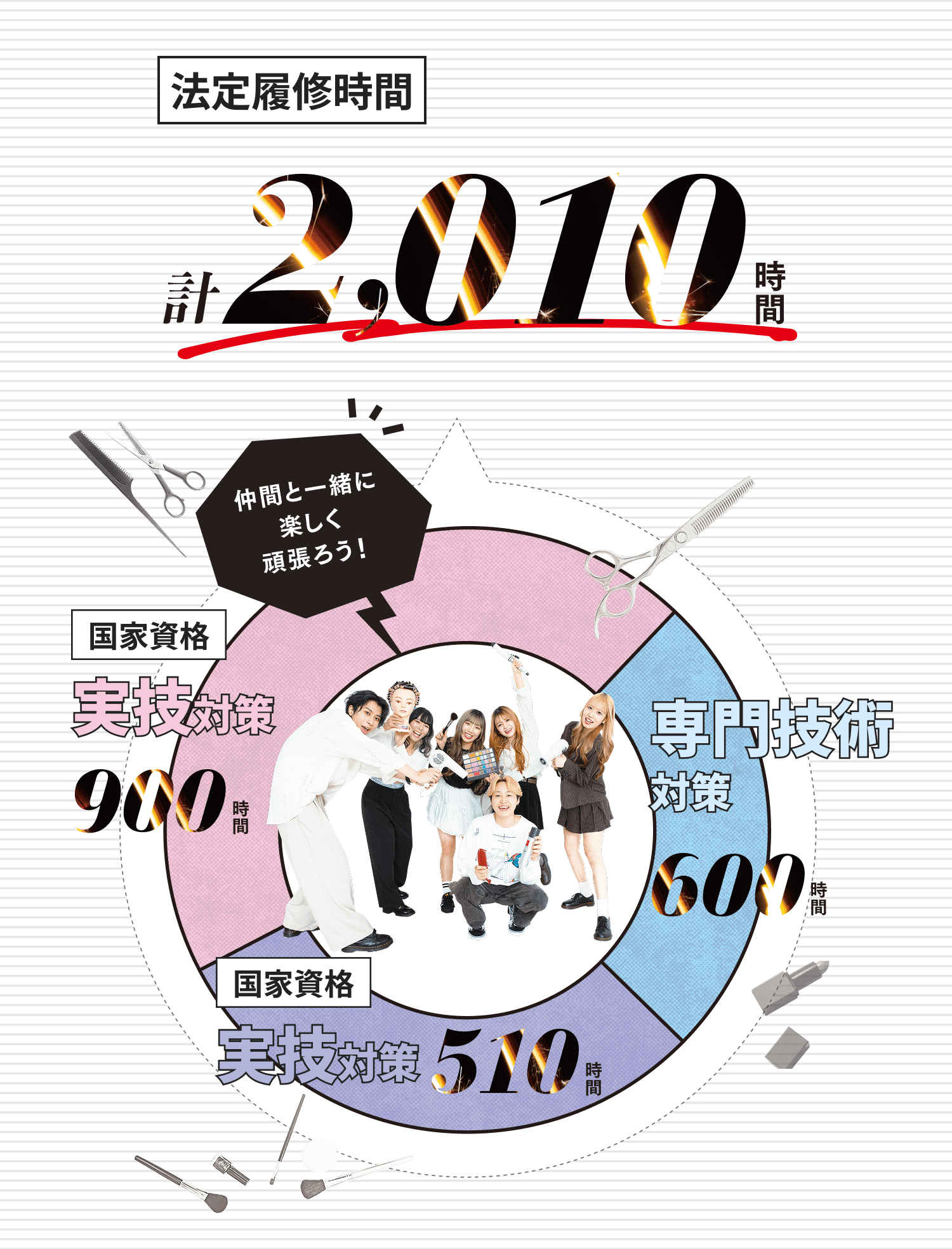 顔立ちや髪質を活かしたヘアメイクの実践的なテクニックを習得していきます。