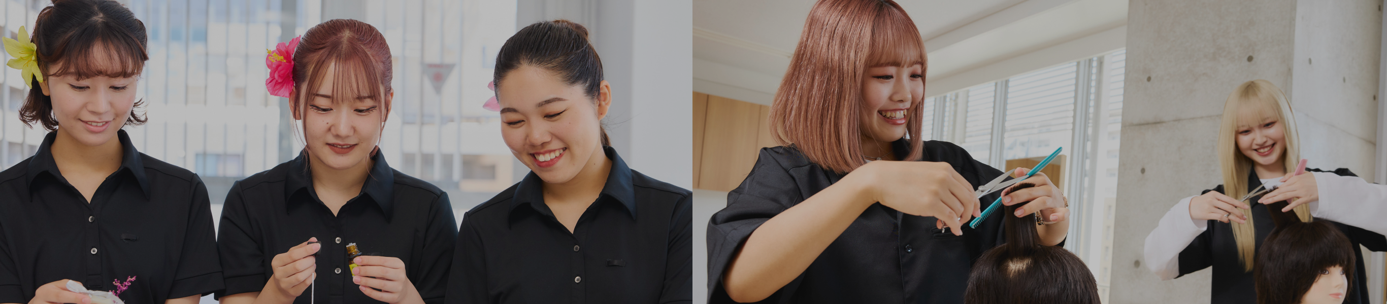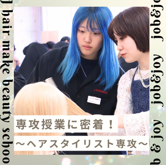 ジェイヘアメイク美容専門学校では、企業連携授業でサロン業務を学べます。 現場に基づいた実践的な学びで、就職後スタイルストへの早期デビューが目指せます。