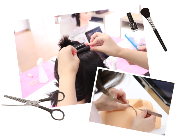 カット・カラー・ワインディング・ヘアアレンジ・まつエクなど様々な授業を体験してみよう☆